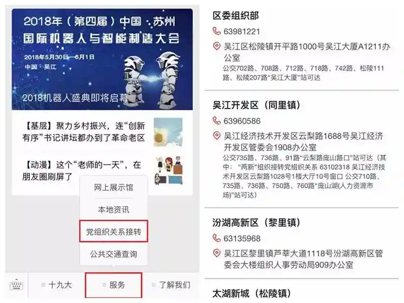 工作单位有党组织的,应将组织关系及时转移到单位党组织。目前,吴江凡是有党员的单位,都已经通过单独组建或联合组建的方式建立了党组织,对于没有党员的单位,也实现了党的工作覆盖。可以通过拨打党员服务热线(12371),向单位所在镇(开发区)组织部门咨询相关情况,他们将按照就近就便原则,帮助你落实好组织关系。