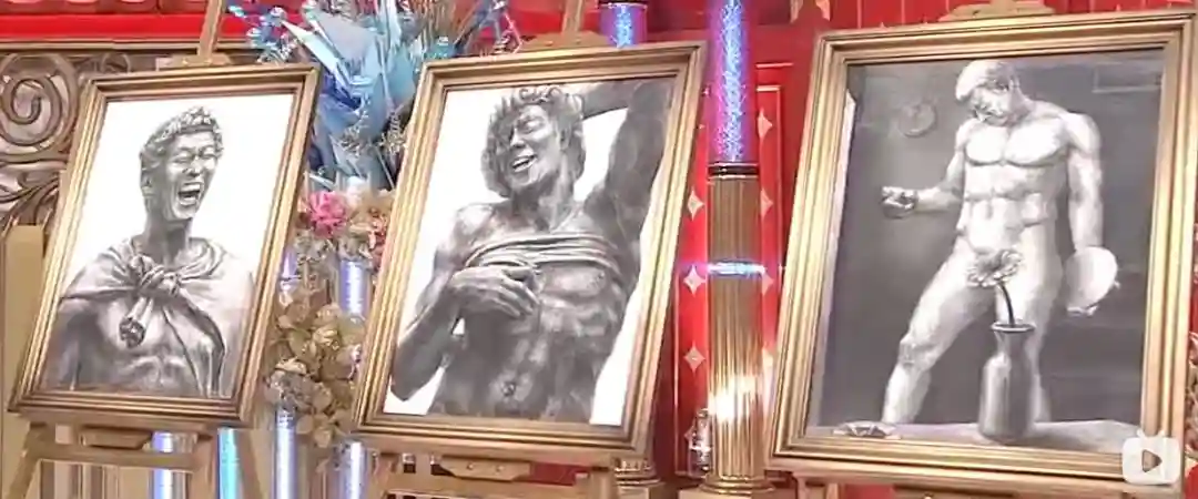 是不是和国内略有不同,镜头拉近时,感觉线条也没有中国的素描细腻,甚至有弹幕说,这画的什么,先不说将亚洲与欧洲人结合的创新点,这三幅作品具有许多可圈可点的地方。