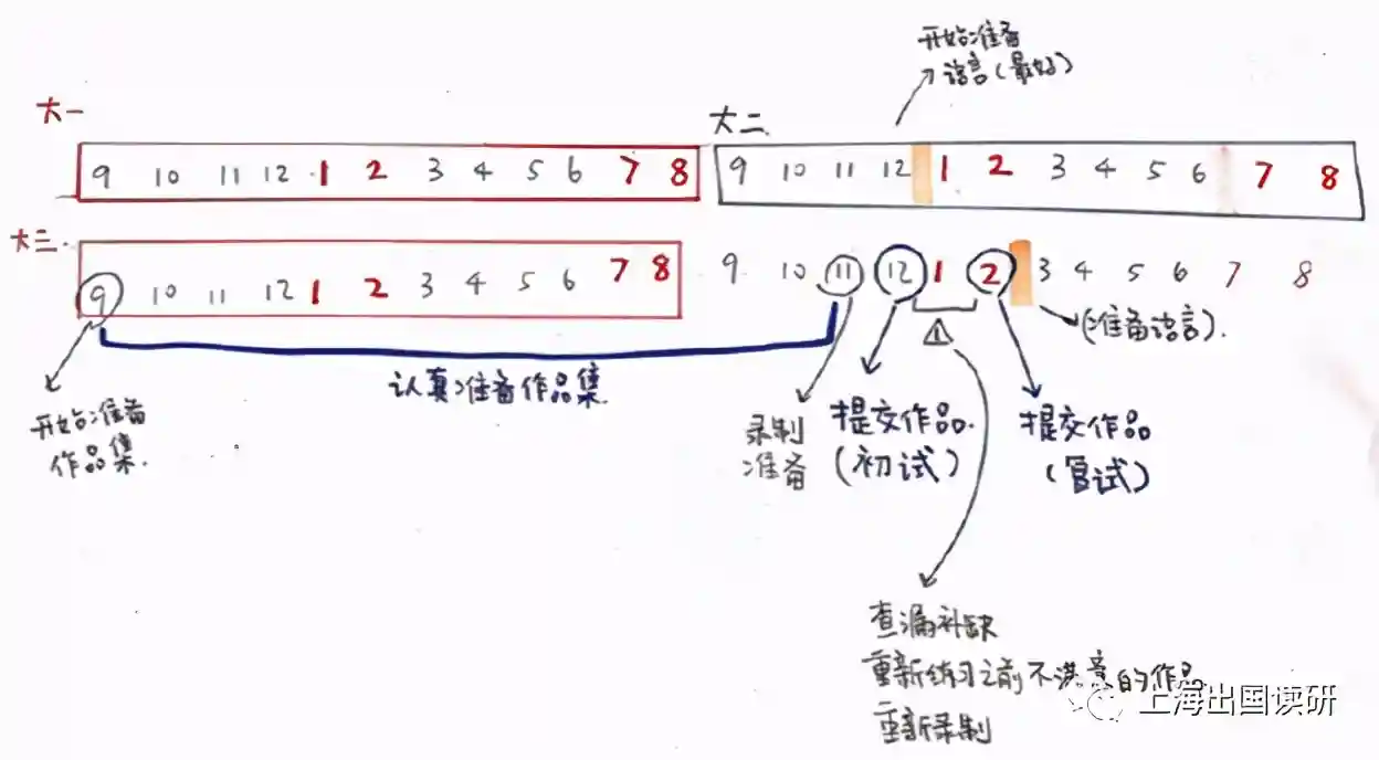 就拿我的钢琴专业作为例子,需要5首作品,建议准备时间起码一年,对自己专业特别有自信的同学10个月,但是作品的准备一定是越久越好,越早越好,你磨的时间越久,你弹出来的就越细,整体也是越好,就像艺考一样的,准备的时间越久出来的效果越好。