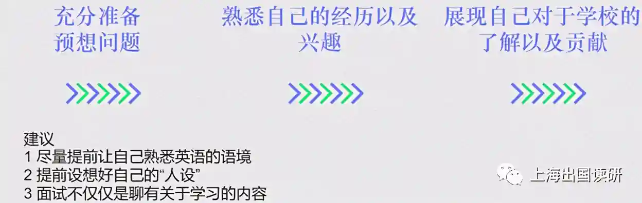 大家在面试前一两周时,可以充分模拟一下面试官会问到什么样的问题,如告诉我今天你的一件有趣的事情,不仅仅是关于你专业,你的钢琴,你的乐器,也包括任何你自己的经历,你的家庭,这些都是他可能会以聊天的形式出现的内容。如果很干巴巴地自我介绍就很没有意思。